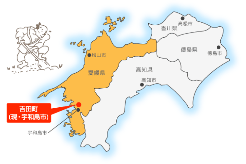 温州みかんは宇和島市吉田町立間の加賀山次郎氏が、寛政6年(1794)に土佐からの苗木を1本導入した事に始まります。 その後、慶応元年(1865)に西予市明浜町俵津の熊吉という苗木商が兵庫県川辺郡東野村(現伊丹市)から55本の温州みかんを持ち帰り、立間の加賀山千代吉氏が購入したといわれています